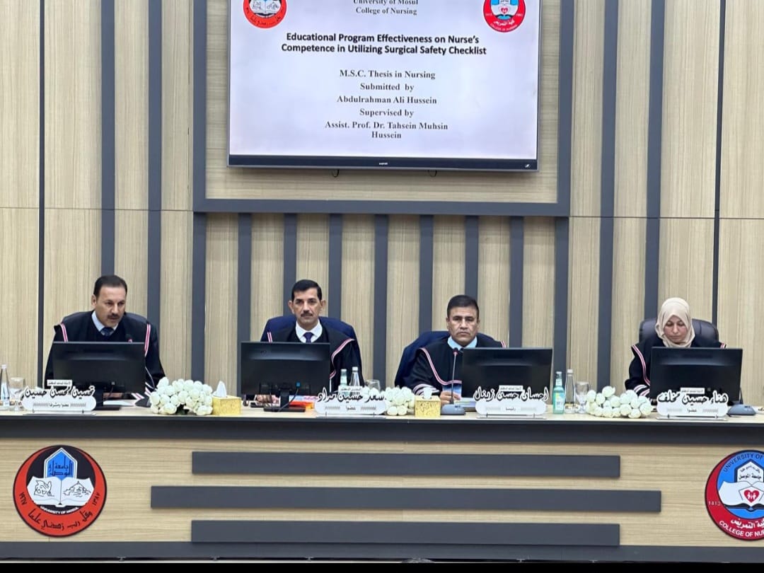 “عميد كلية التمريض في جامعة تلعفر يترأس مناقشة رسالة ماجستير حول السلامة الجراحية”