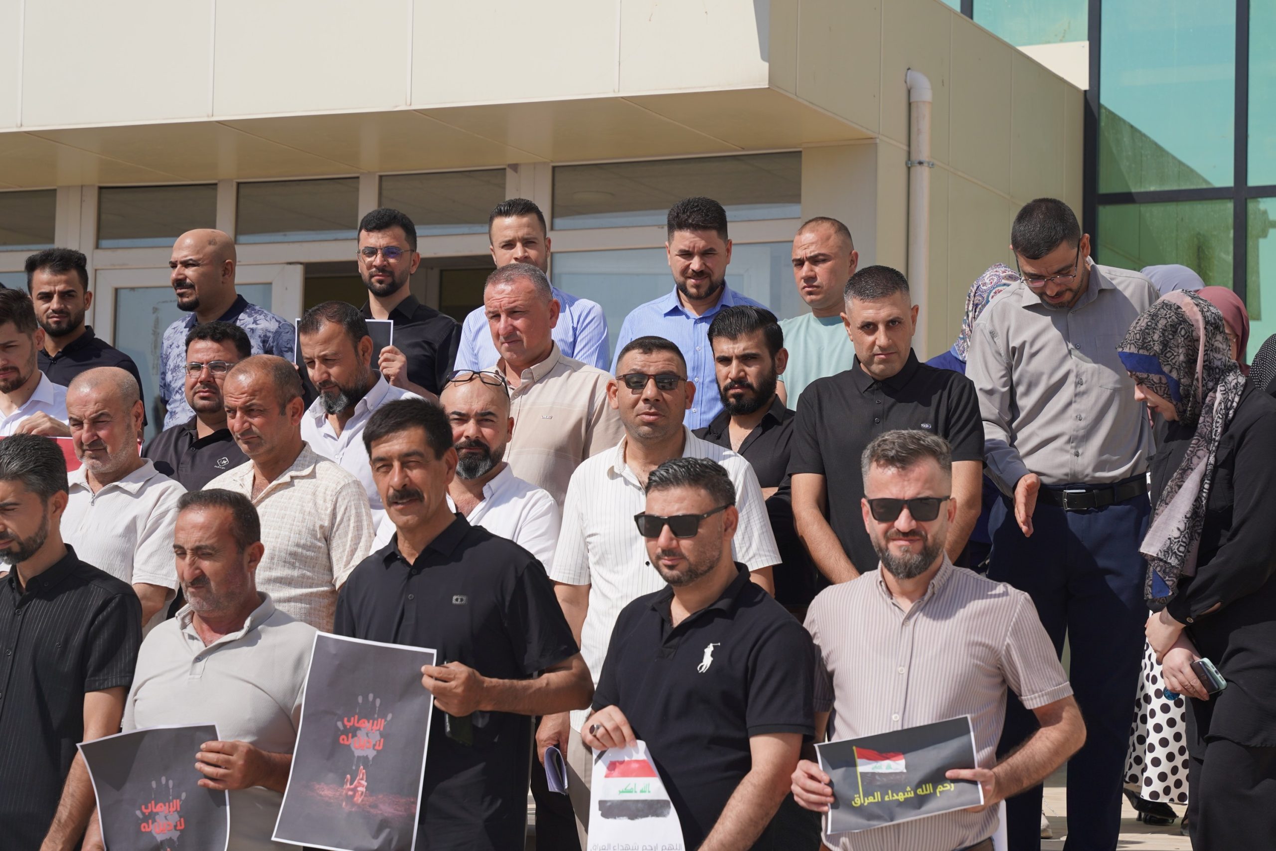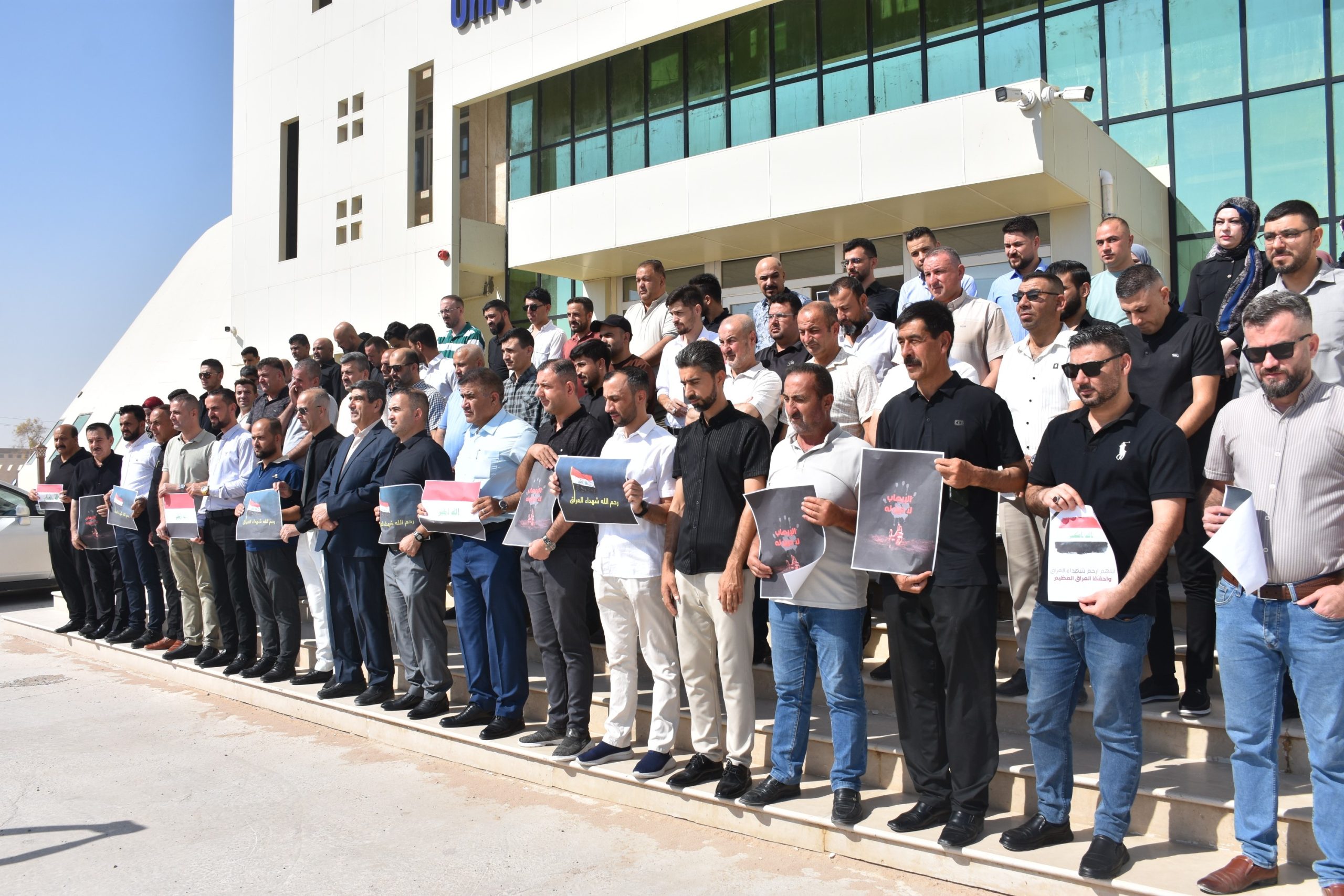 وشارك في الوقفة السيد رئيس الجامعة الأستاذ الدكتور عبد العزيز أحمد عزيز إلى جانب منتسبي الجامعة من أعضاء الهيئة التدريسية والادارية، معبرين جميعاً عن تضامنهم العميق مع كافة المكونات العراقية التي تعرضت للاضطهاد والتهجير القسري، ومؤكدين أن هذه الجرائم الوحشية تمثل انتهاكاً صارخاً لأبسط حقوق الإنسان وستبقى وصمة عار في تاريخ البشرية.