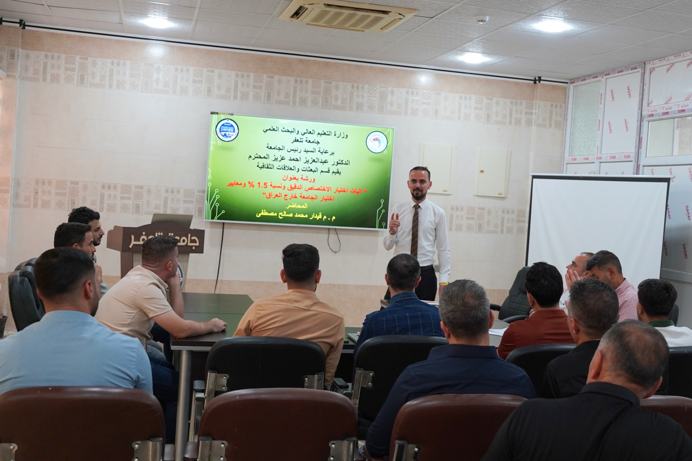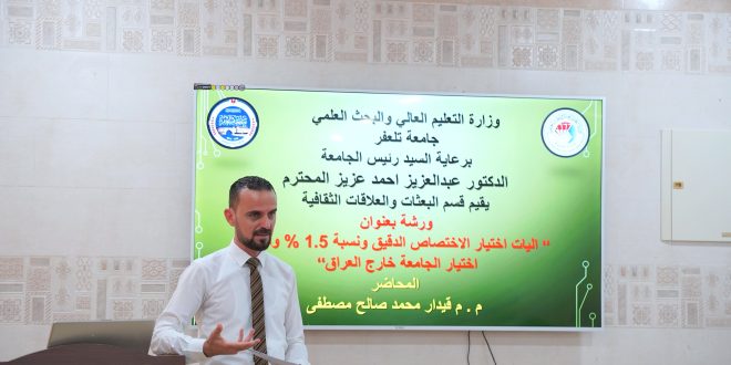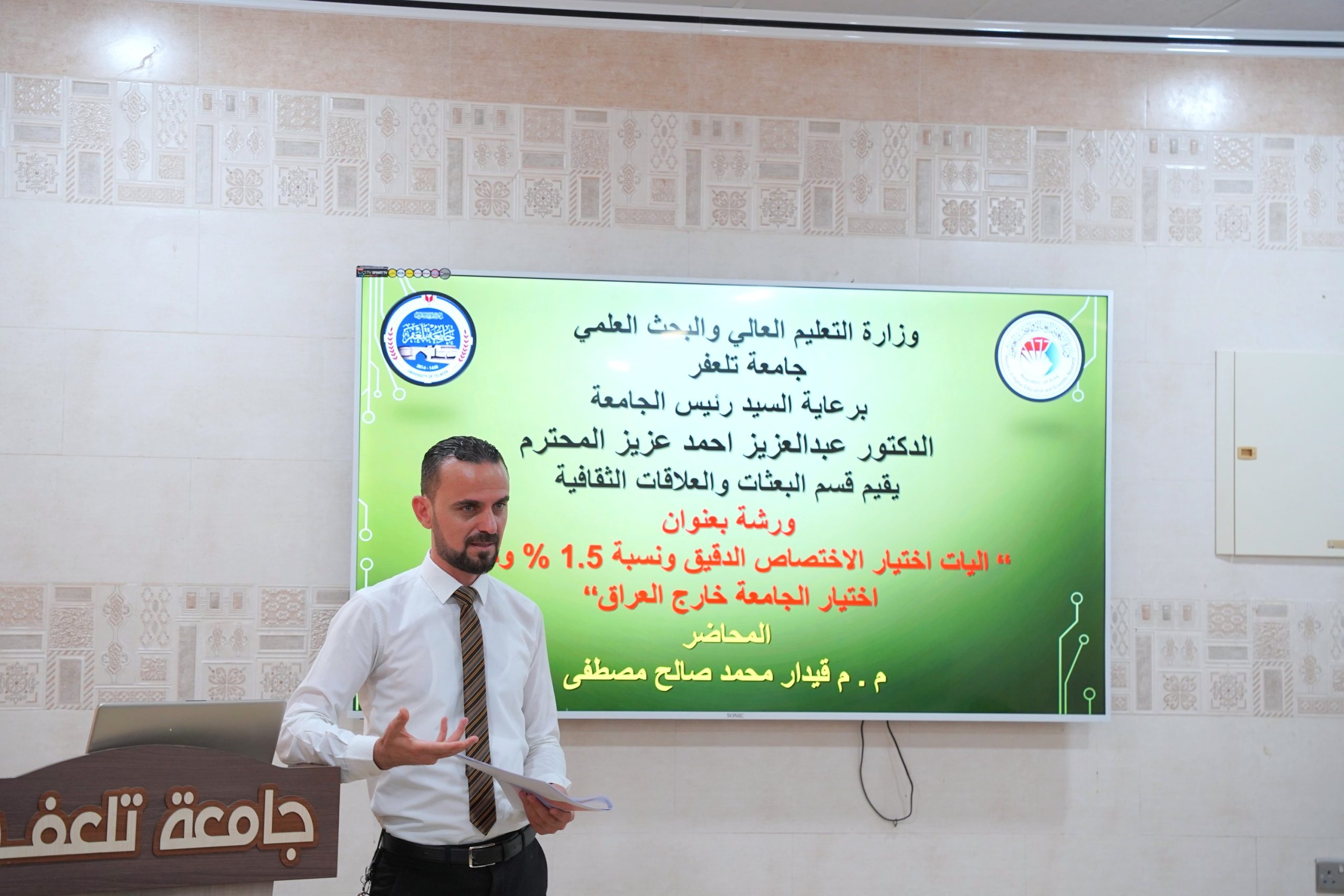 نظم قسم البعثات والعلاقات الثقافية في جامعة تلعفر ورشة توضيحية بعنوان “آليات اختيار الاختصاص الدقيق ونسبة 1.5% ومعايير اختيار الجامعة خارج العراق”، يوم الثلاثاء الموافق 12 آب 2025 في رحاب قاعة مركز التعليم المستمر، بهدف رفع مستوى الوعي لدى منتسبي الجامعة الراغبين في إكمال دراستهم العليا خارج العراق وتوضيح الضوابط والتعليمات ذات الصلة.