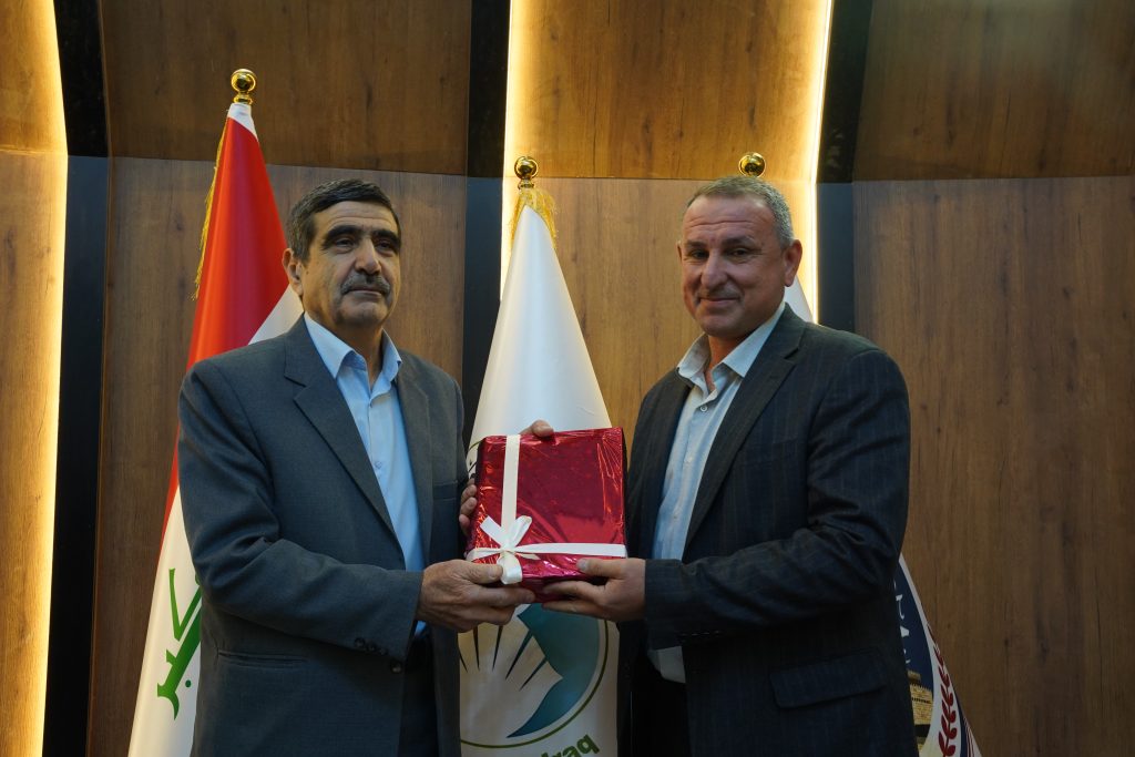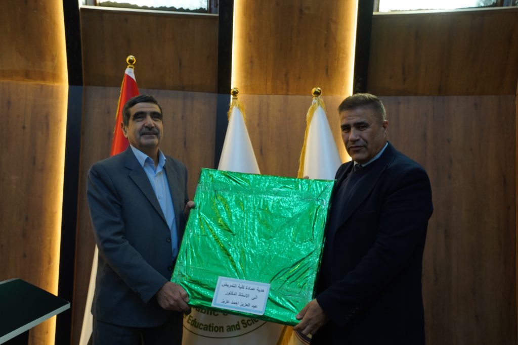 وفي نهاية الحفل، قدم السيد المساعد الاداري الاستاذ الدكتورة هدى اسماعيل خالد الجميلي درع جامعة تلعفر للاستاذ الدكتور عبد العزيز احمد عزيز تقديرًا لجهوده المخلصة وعطائه الممتد، وسط أجواء من التقدير والاحترام عكست مكانته وما تركه من أثر طيب في نفوس الجميع