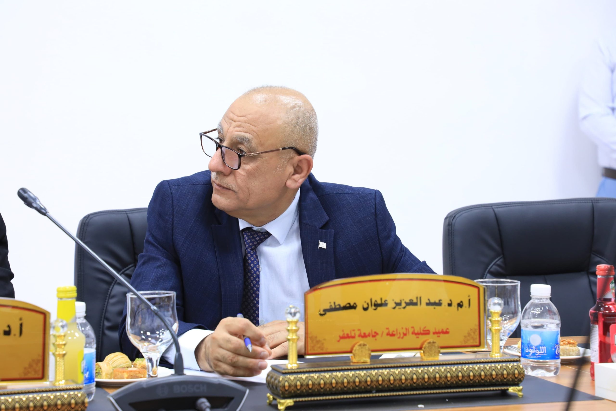 The Dean of the College of Agriculture at the University of Telafer, Dr. Abdul Aziz Alwan Mustafa, participated in the periodic meeting of the Committee of Agriculture College Deans in Iraqi Universities, which was held at the College of Agriculture at the University of Tikrit on Sunday, July 13, 2025, with the attendance of agriculture college deans from various Iraqi universities.