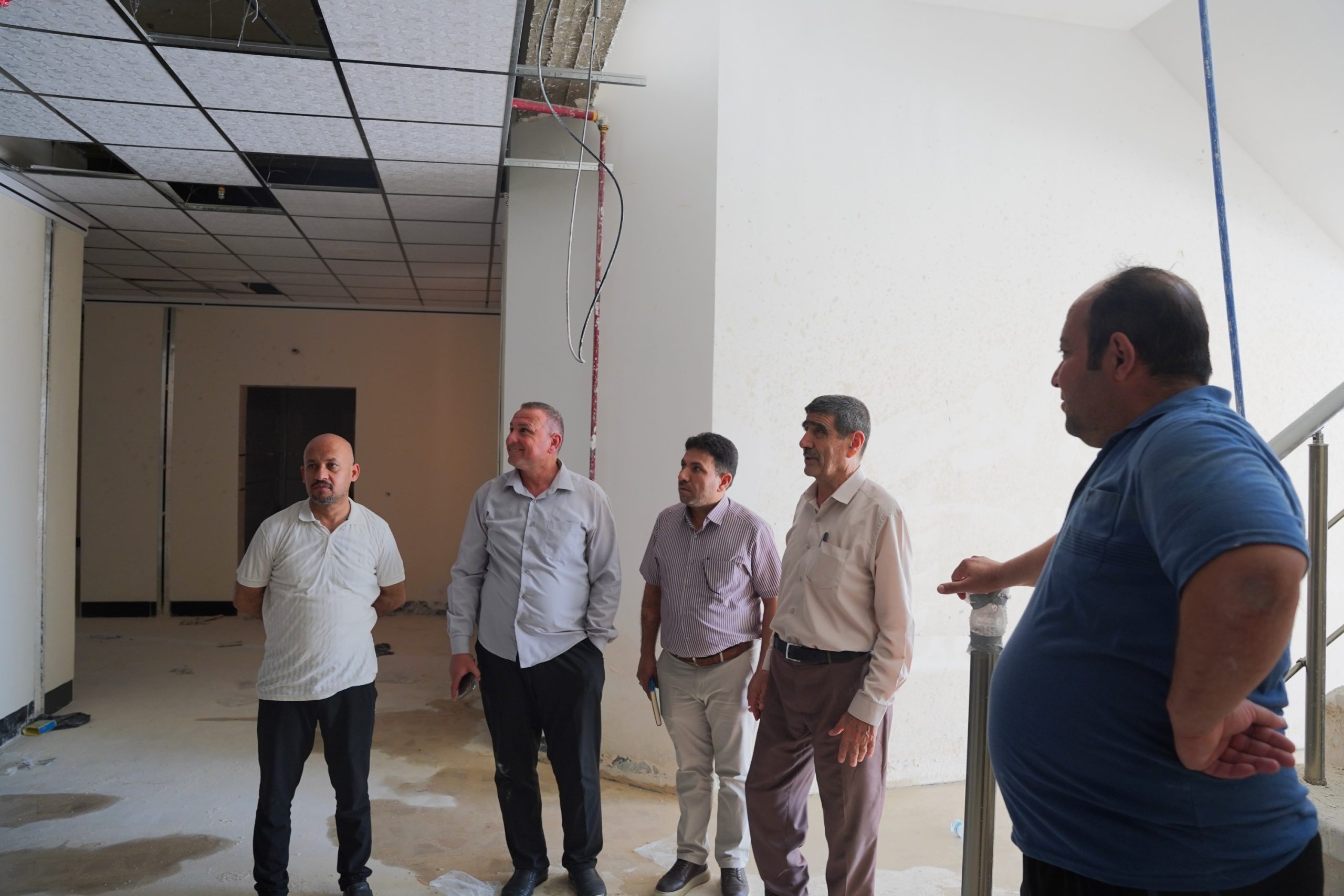 Embodying his continuous commitment to following the infrastructure development journey at the university and seeking to enhance academic facilities to ensure providing an exceptional educational environment that meets the highest international standards, the President of the University of Telafer, Professor Dr. Abdul Aziz Ahmed Aziz, accompanied by the Assistant to the University President for Administrative and Financial Affairs and the Deans, led a comprehensive inspection tour of the new Nursing College building project, where the visit aimed to monitor advanced completion stages and assess execution accuracy and work quality.