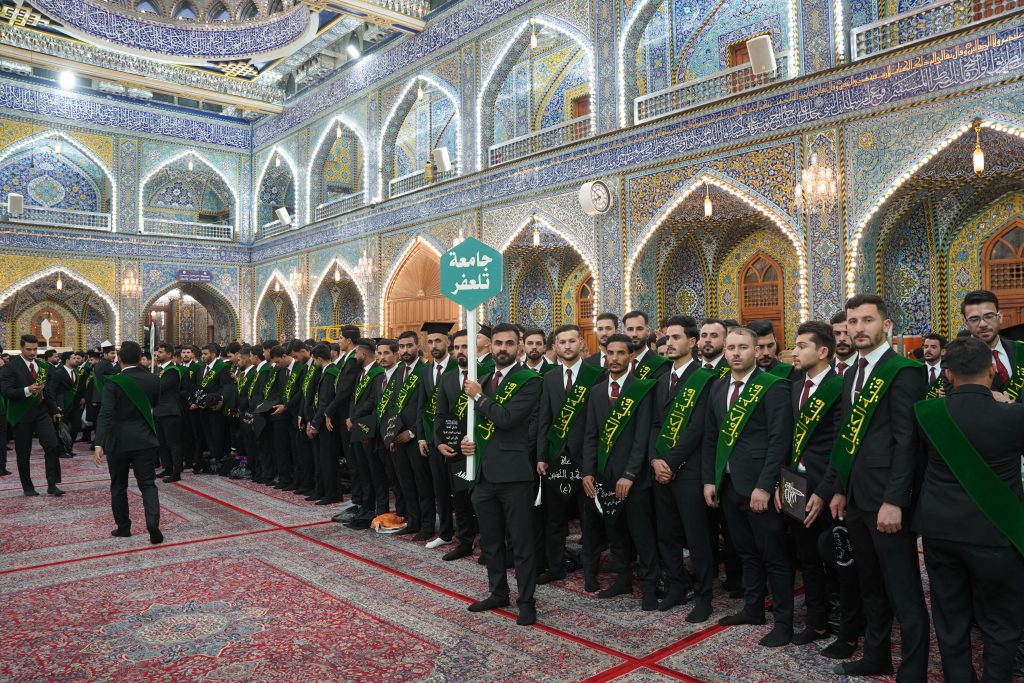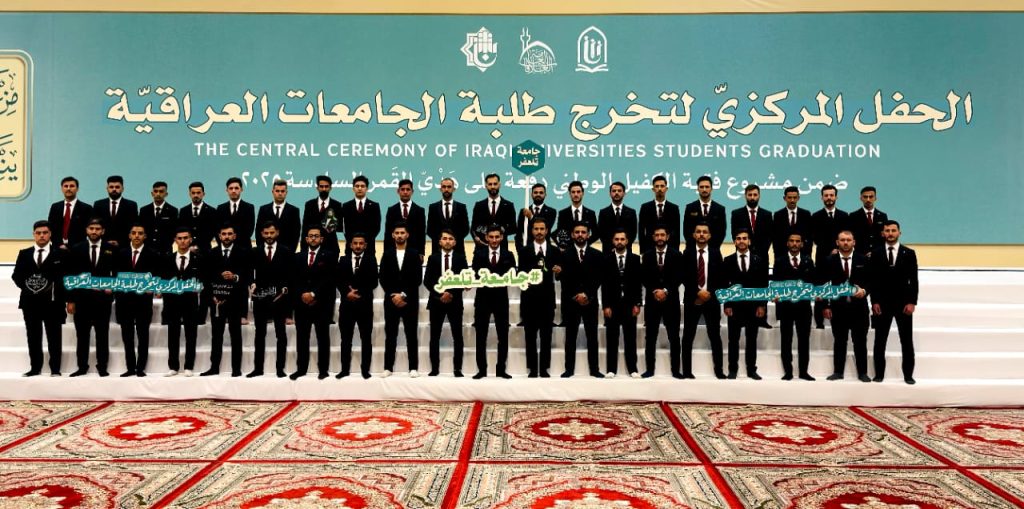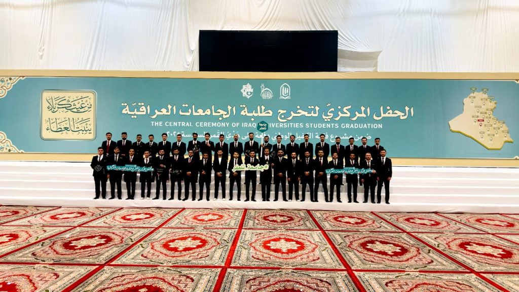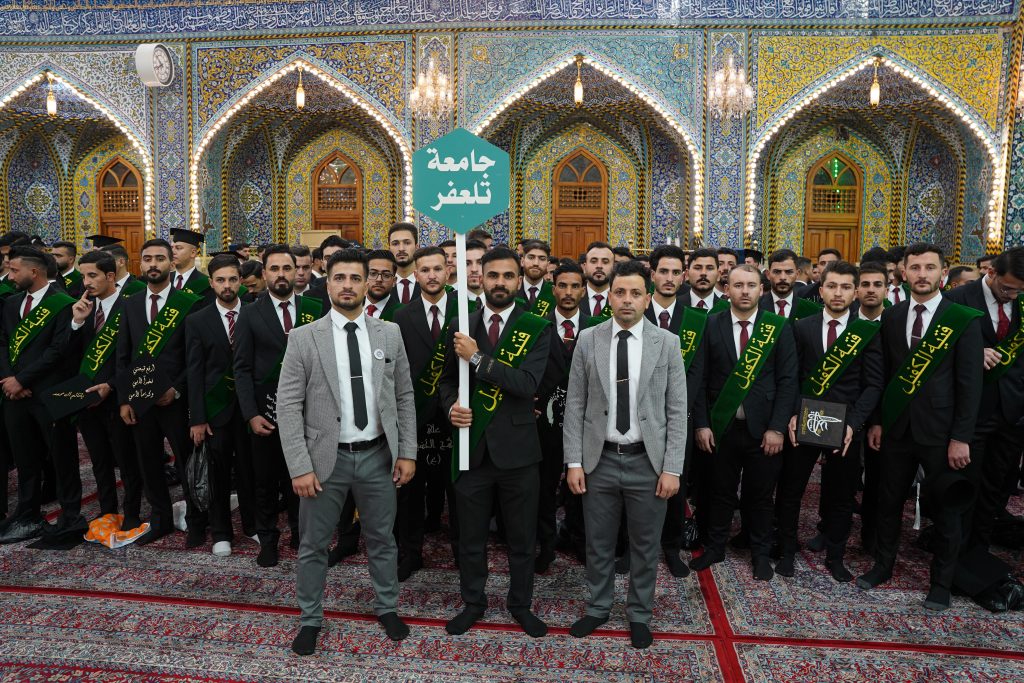 Under the patronage of the President of the University of Telafer, Professor Dr. Abdul Aziz Ahmed Aziz, a distinguished group of the University’s students participated in the central graduation ceremony for Iraqi university students, organized by the Al-Abbas Holy Shrine on Thursday and Friday, December 11–12, 2025, under the slogan “From the Rain of Karbala, Giving Grows.”