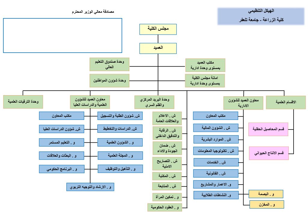 الهيكل التنظيمي لكلية الزراعة