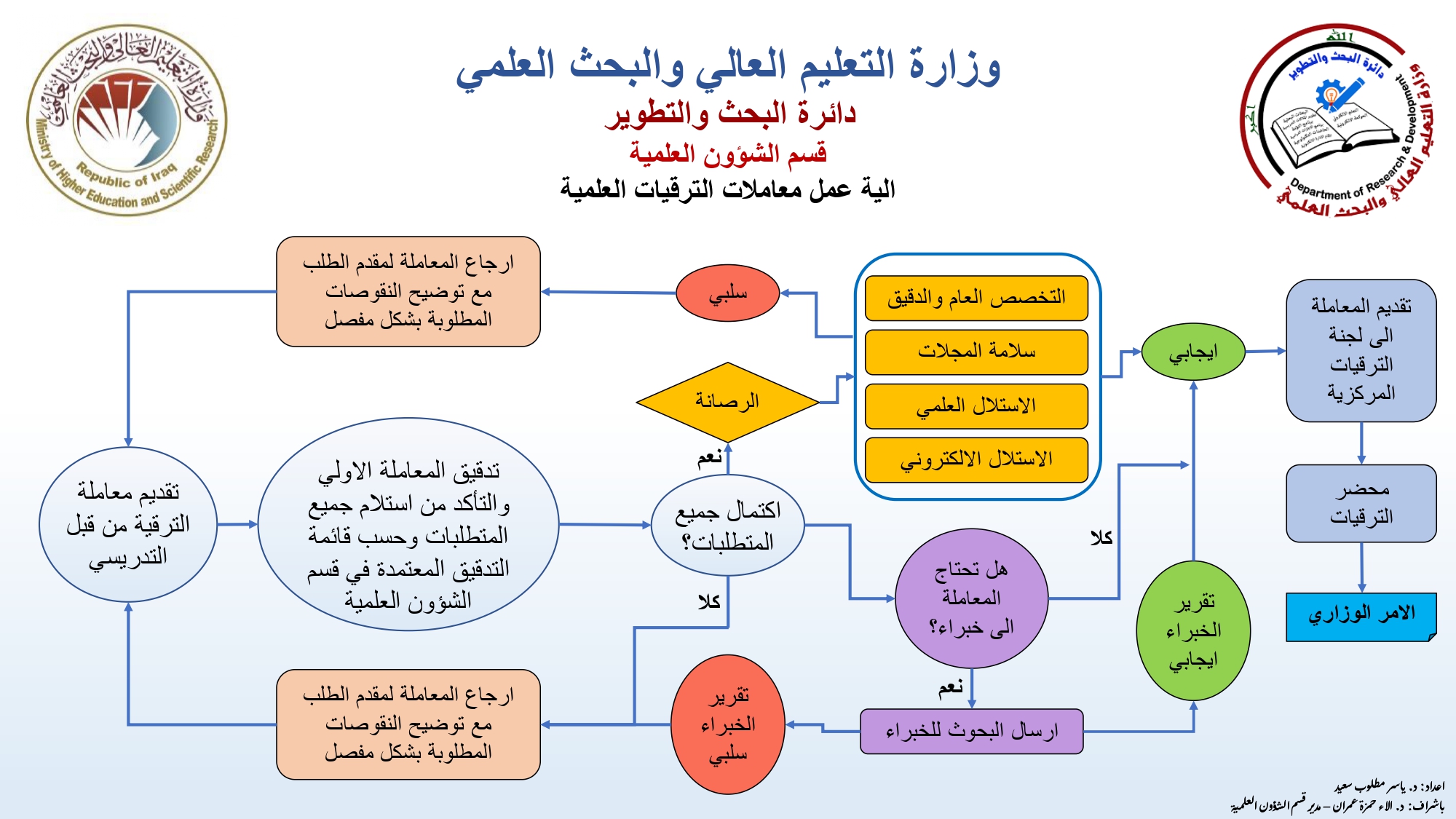 كما يوضح الملف ادناه الية عمل منظومة الترقيات العلمية (المصدر: موقع دائرة البحث والتطوير):